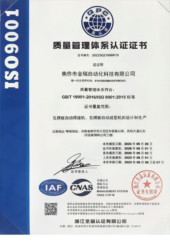 質(zhì)量管理體系認(rèn)證證書